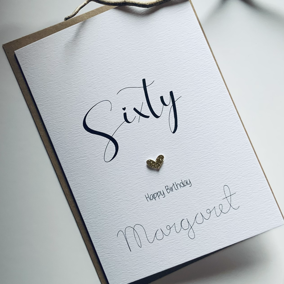 Special age cards- Large a5 textured card with kraft envelope. Embellished with gold heart. Add age & name